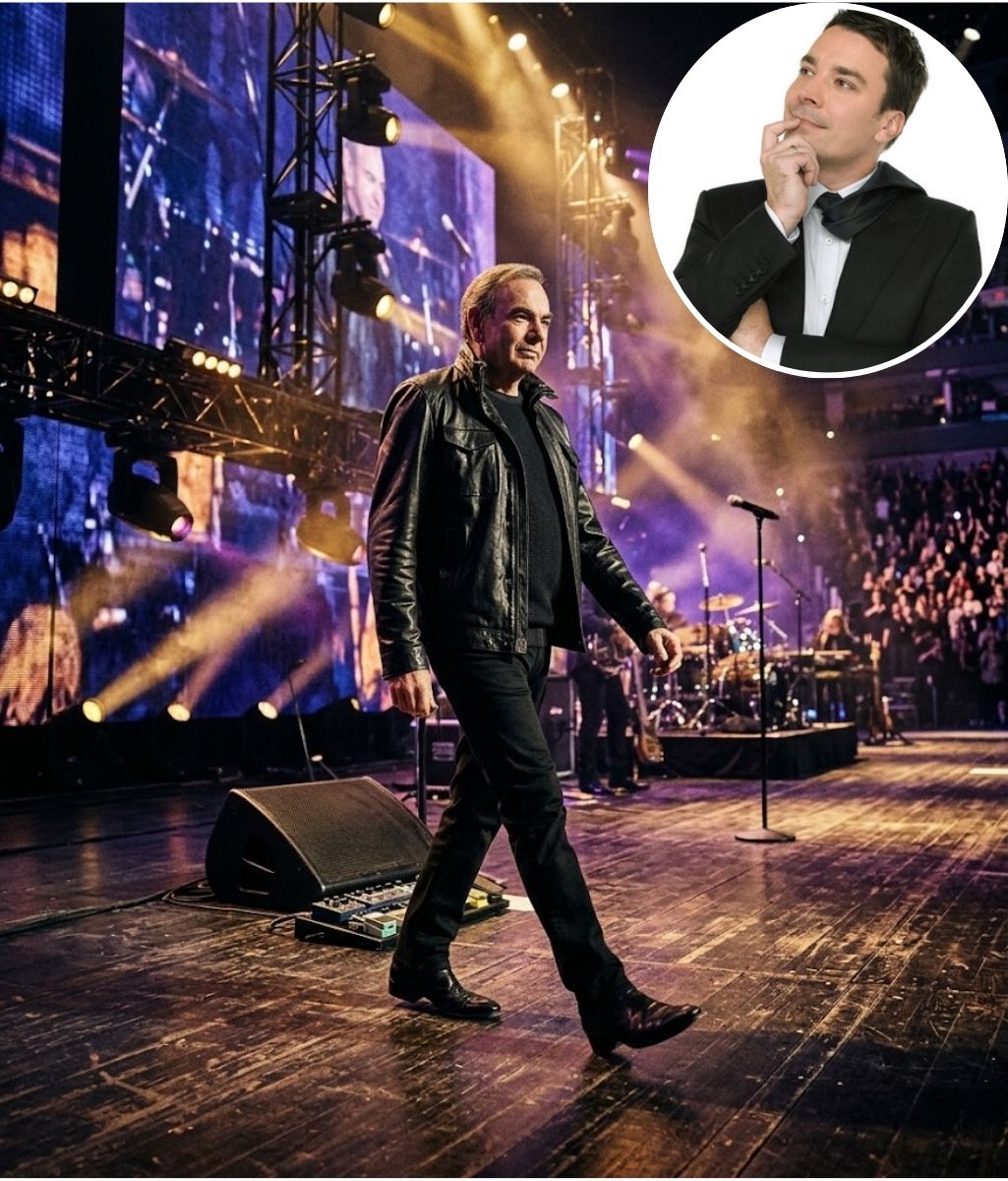 The setting was relaxed and familiar. Jimmy Fallon, known for his enthusiasm and genuine admiration for legendary musicians, welcomed Neil Diamond to the stage with the kind of excitement that fans have long associated with him. Fallon has often expressed deep respect for the artists who shaped modern music, and Diamond’s presence in the studio carried a special significance. For decades, Diamond’s voice had traveled across generations, filling concert halls and living rooms alike with songs that blended storytelling and melody in unforgettable ways.