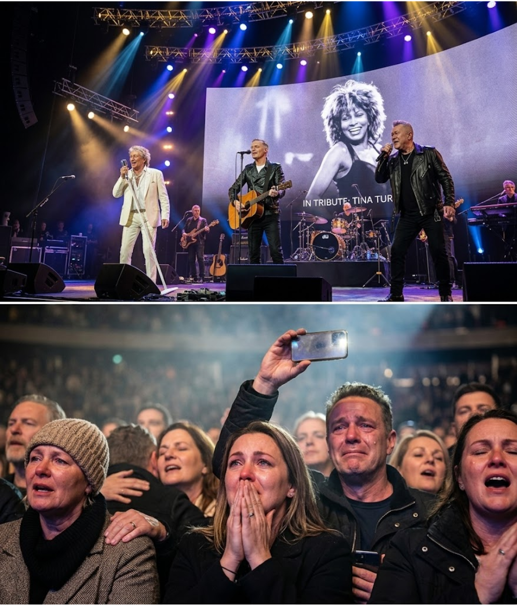 During a powerful tribute performance honoring Tina Turner, an unexpected moment unfolded when three legendary performers—Rod Stewart, Bryan Adams, and Jimmy Barnes—shared the stage in celebration of the life and legacy of the Queen of Rock ’n’ Roll.