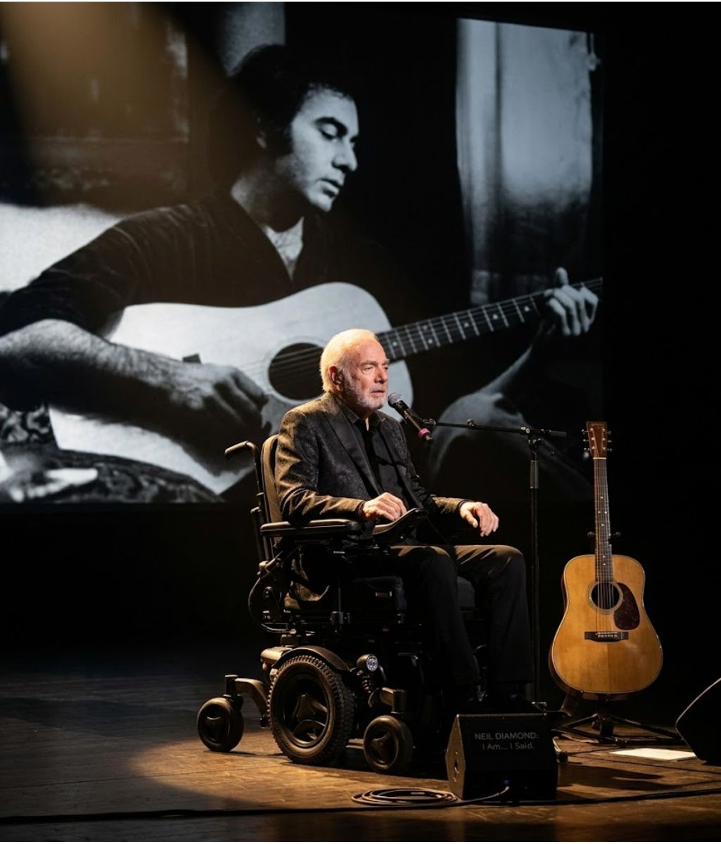 During that particular performance, the stage was stripped of spectacle. No elaborate lighting, no booming instrumentation—only a single spotlight illuminating Neil Diamond seated alone.